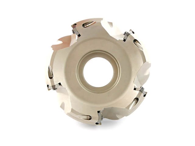 - Głowica frezarska na wymienne płytki wieloostrzowe, dzięki którym możliwa jest obróbka w różnych materiałach, w zależności od zamocowanych ostrzy.
