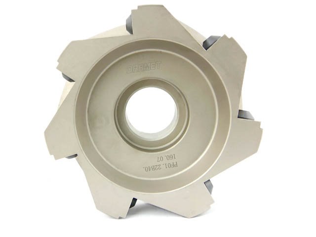 - Głowica frezarska na wymienne płytki wieloostrzowe, dzięki którym możliwa jest obróbka w różnych materiałach, w zależności od zamocowanych ostrzy.