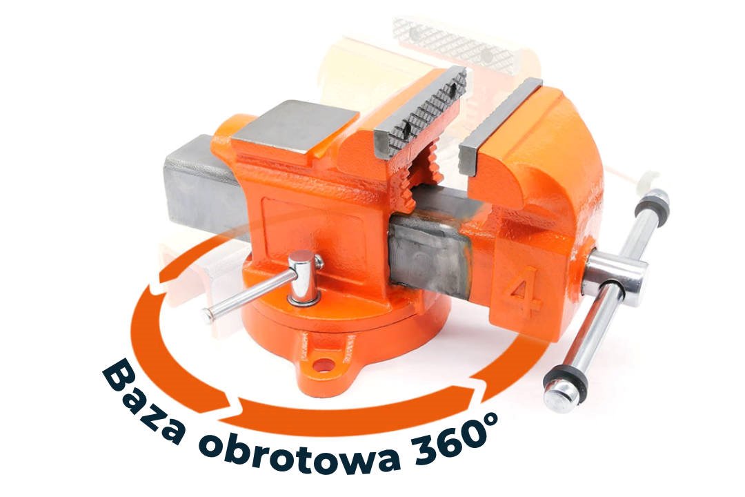 - Wyposażone w zębatą podstawę obrotową 360° z dwoma blokadami i trzema otworami montażowymi, co umożliwia precyzyjne ustawienie elementu oraz stabilne mocowanie do stołu warsztatowego