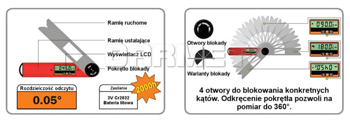 Kątomierz elektroniczny ze wskazaniem cyfrowym