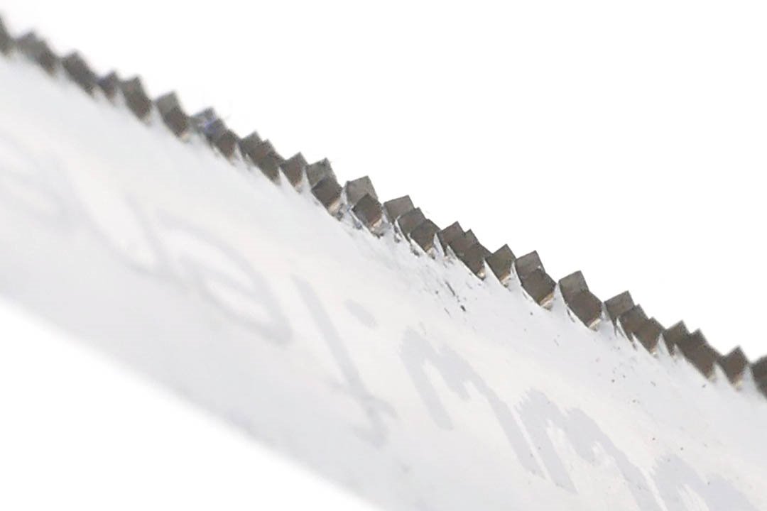 - Wykonany w technologii bimetalowej – zęby ze stali szybkotnącej M42 (8% kobaltu, twardość 67–68 HRC) oraz elastyczny korpus ze stali sprężynowej gwarantują wysoką trwałość i odporność na pękanie.