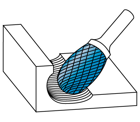 - Frez o uzębieniu HP-8 (Steel Cut) specjalnie zaprojektowany do szybkiego usuwania dużych ilości materiału. Producent deklaruje do 60% większą wydajność obróbki w porównaniu z innymi frezami krzyżowymi.