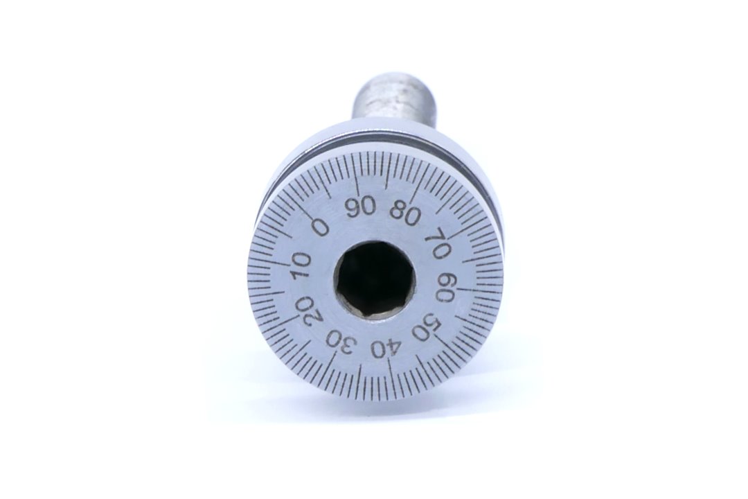 - Śruba mikrometryczna/regulacyjna z podziałką do głowicy wytaczarskiej GWZ-100.