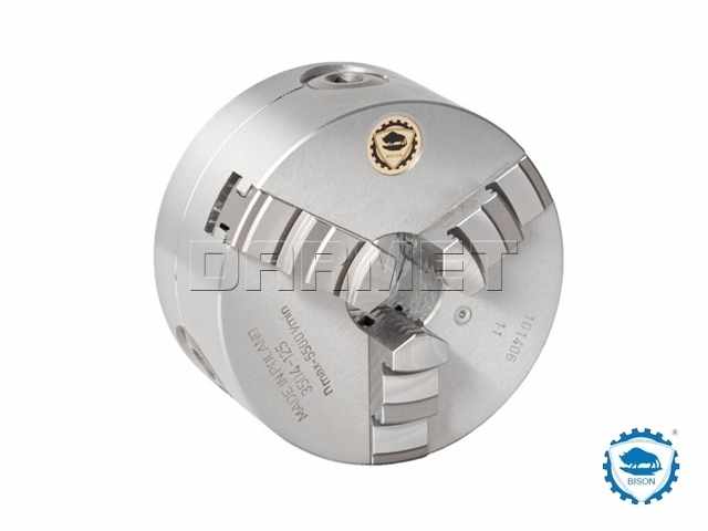 - Uchwyt samocentrujący 3-szczękowy przeznaczony do mocowania na tokarkach, stołach obrotowych, frezarkach