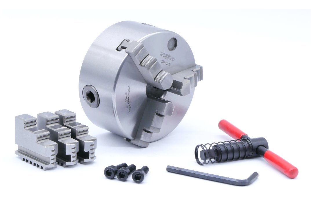 - Uniwersalny uchwyt tokarski samocentrujący 3-szczękowy przeznaczony do mocowania na tokarkach, frezarkach oraz stołach obrotowych