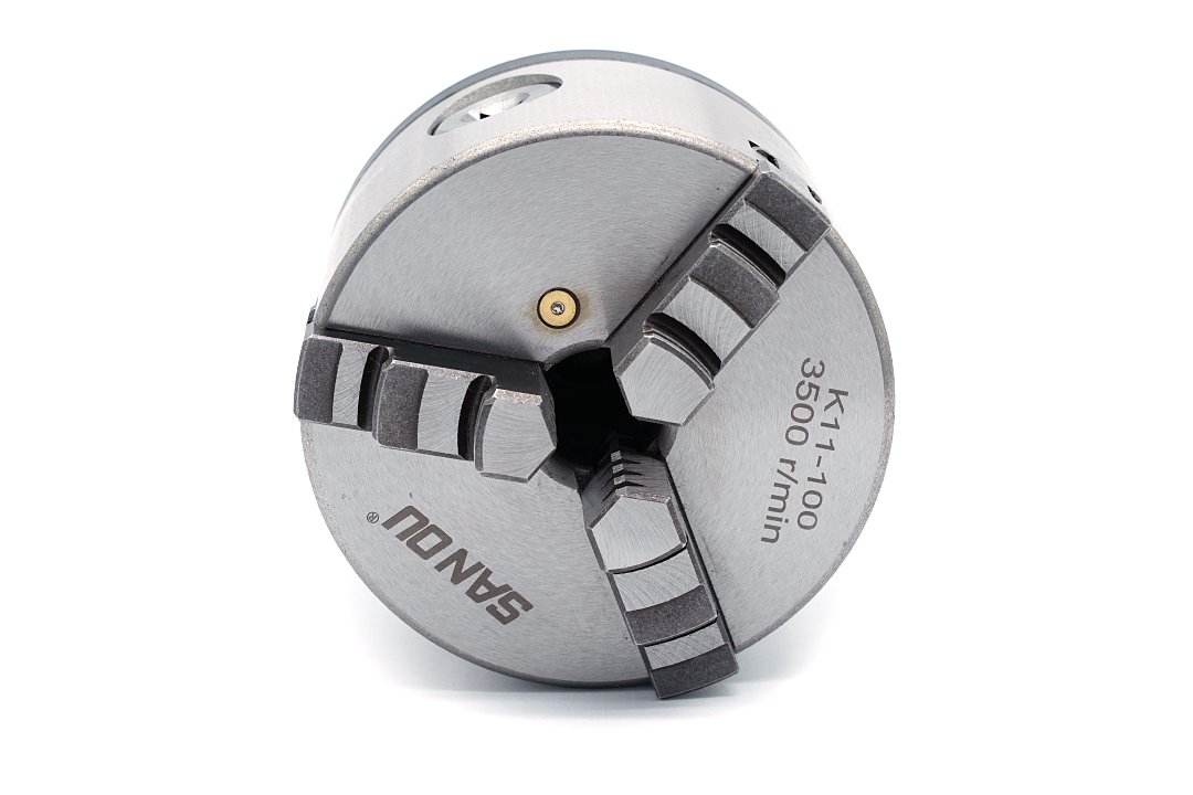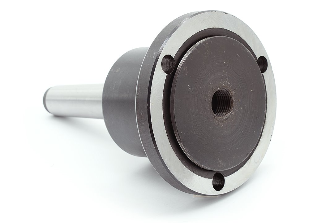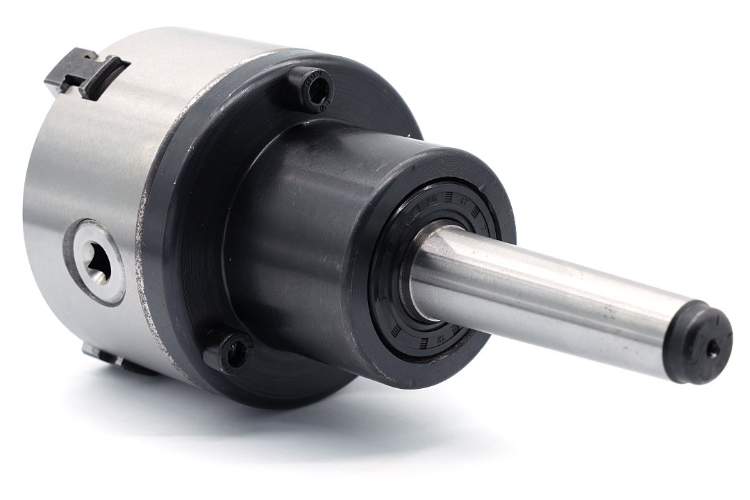 - 3-szczękowy uchwyt tokarski w rozmiarze 100 mm osadzony na płycie obrotowej z trzpieniem Morse MK3.