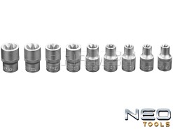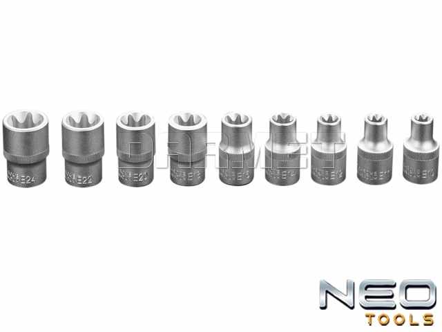 | Nasadki Torx x 9, rozmiary | E10, E11, E12, E14, E16, E18, E20, E22, E24 | |